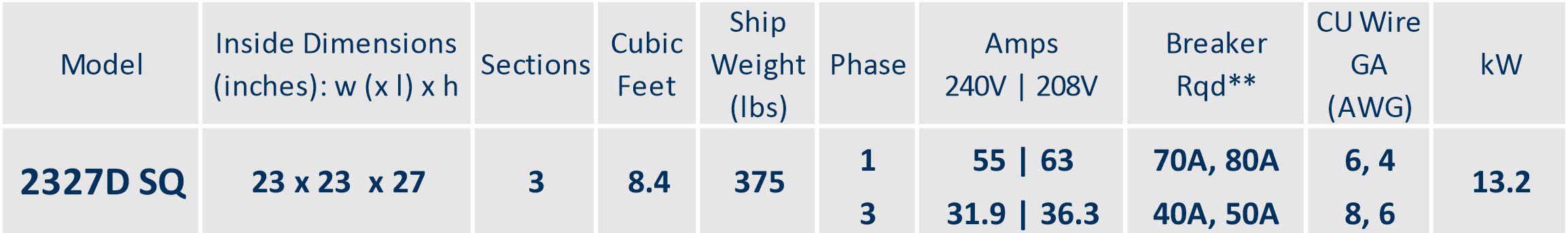 | Voltage & Phase | Unknown, 240V-Single Phase, 240V-3 Phase, 208V-Single Phase, 208V-3 Phase |