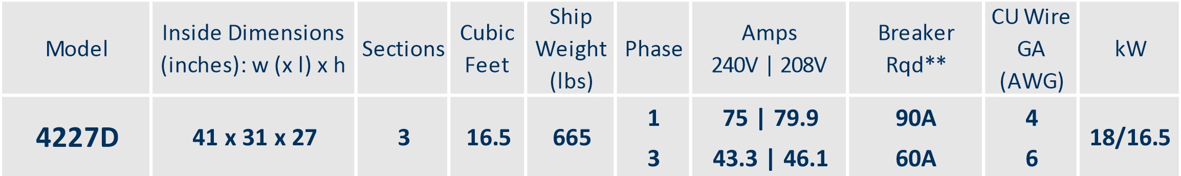The Tuckers Cone Art Kiln Model 4227D is a massive 16.5 cubic feet oval kiln with a full 42″ width, 31″ from front to back and a 27″ depth. The 4227D is designed for a busy production or sculpture studio.